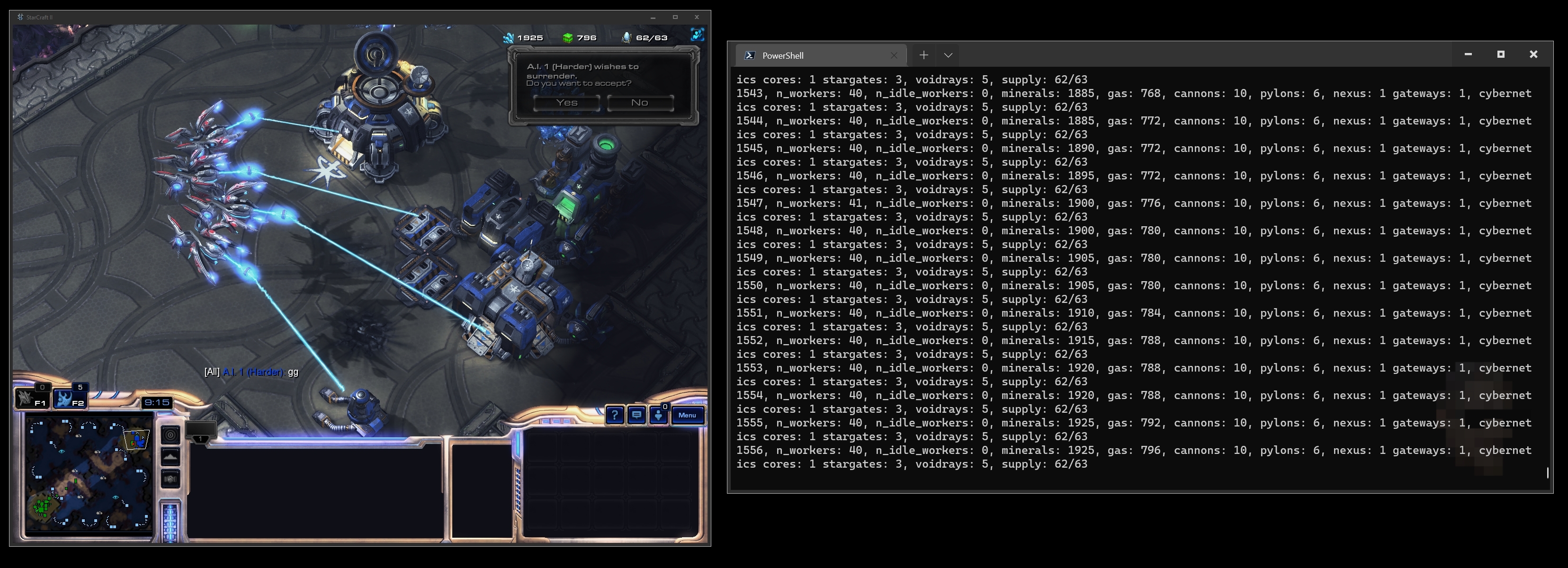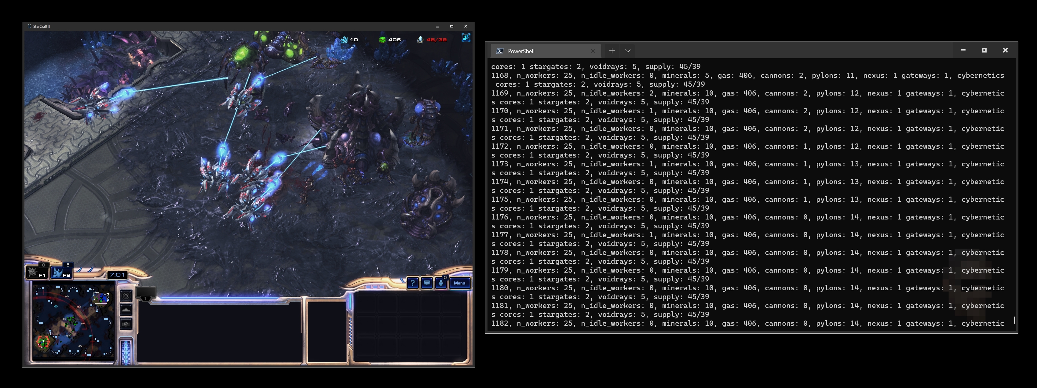 [Bot(Race.Protoss, IncrediBot()), # runs our coded bot, protoss race, and we pass our bot object