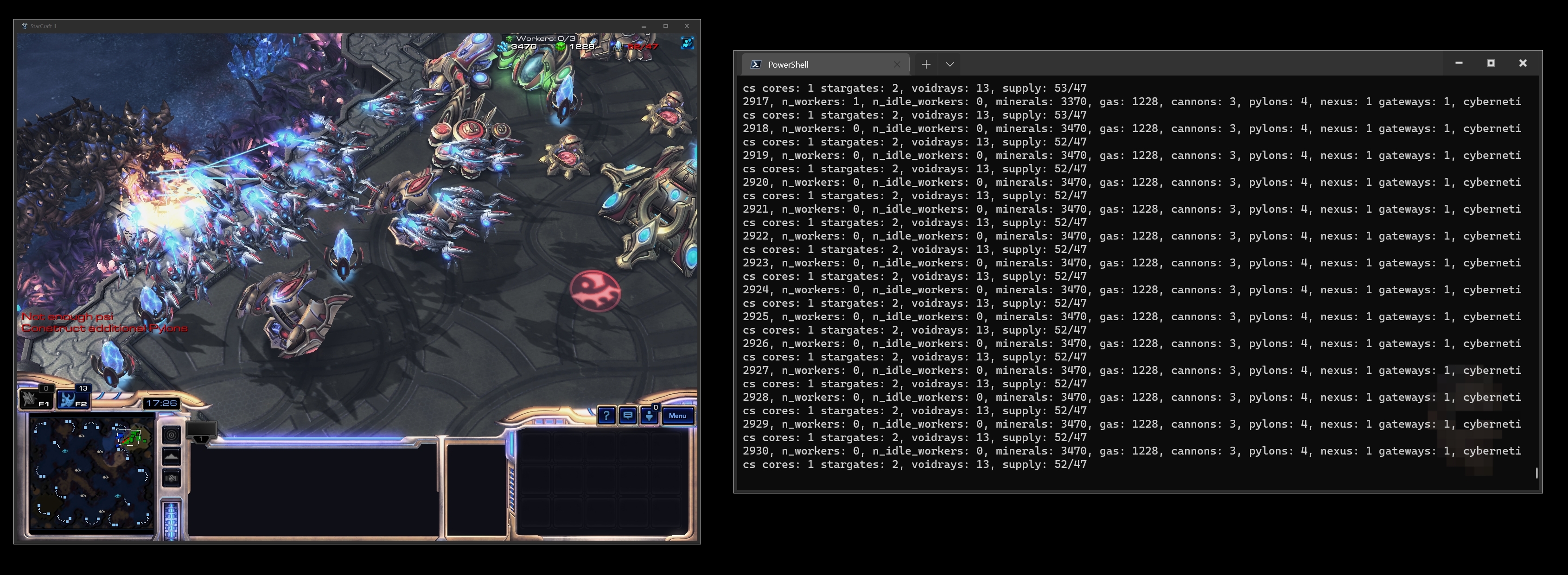 f"stargates: {self.structures(UnitTypeId.STARGATE).amount}, voidrays: {self.units(UnitTypeId.VOIDRAY).amount}, supply: {self.supply_used}/{self.supply_cap}")