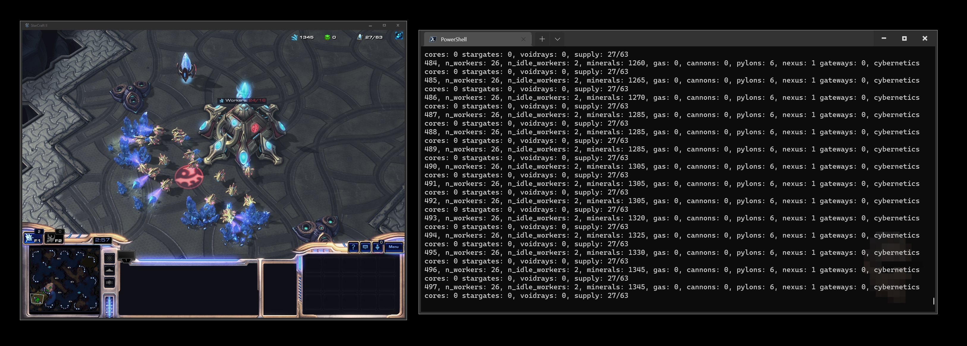 [Bot(Race.Protoss, IncrediBot()), # runs our coded bot, protoss race, and we pass our bot object