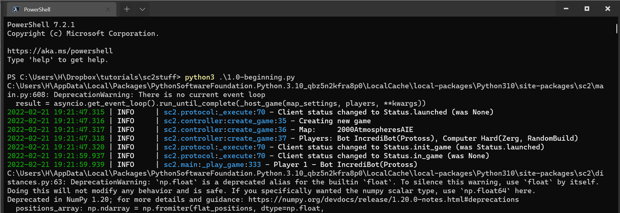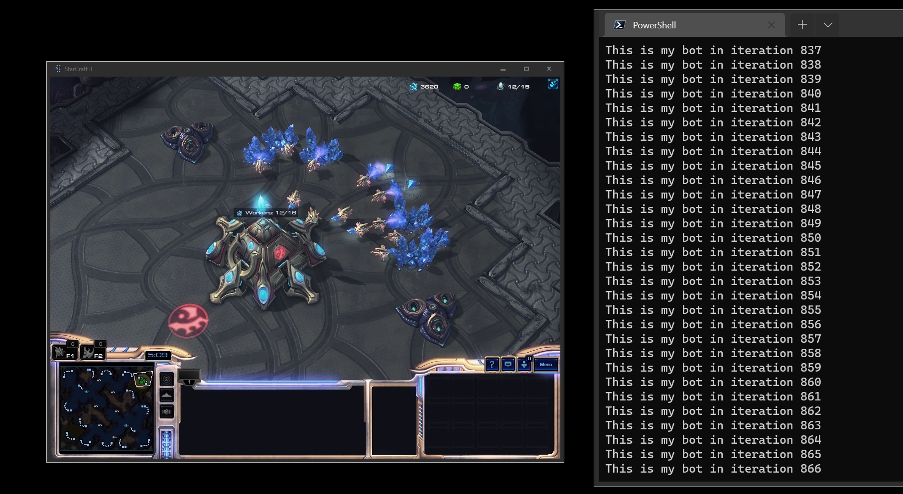 [Bot(Race.Protoss, IncrediBot()), # runs our coded bot, protoss race, and we pass our bot object
