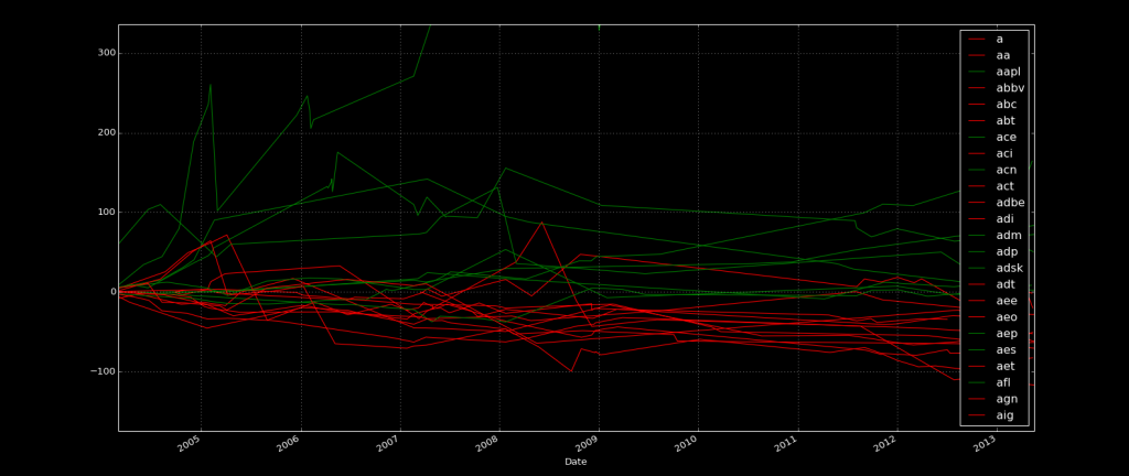 The next question is according to what? We're going to use the S&P 500 index as comparison. The final question is: according to what time frame? The easiest thing we can do is measure performance according to the "now." This is not really the best choice, and will be changed shortly, but, for now, it's what we will use.