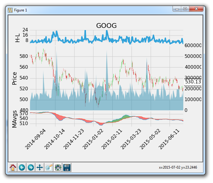 At this point, we're almost complete. The only missing thing here is a good legend. Some of the lines are obvious, but people might be curious what the moving average numbers are, which are 10 and 30 in our case, and so on. Adding a custom legend is what is in store in the next tutorial.