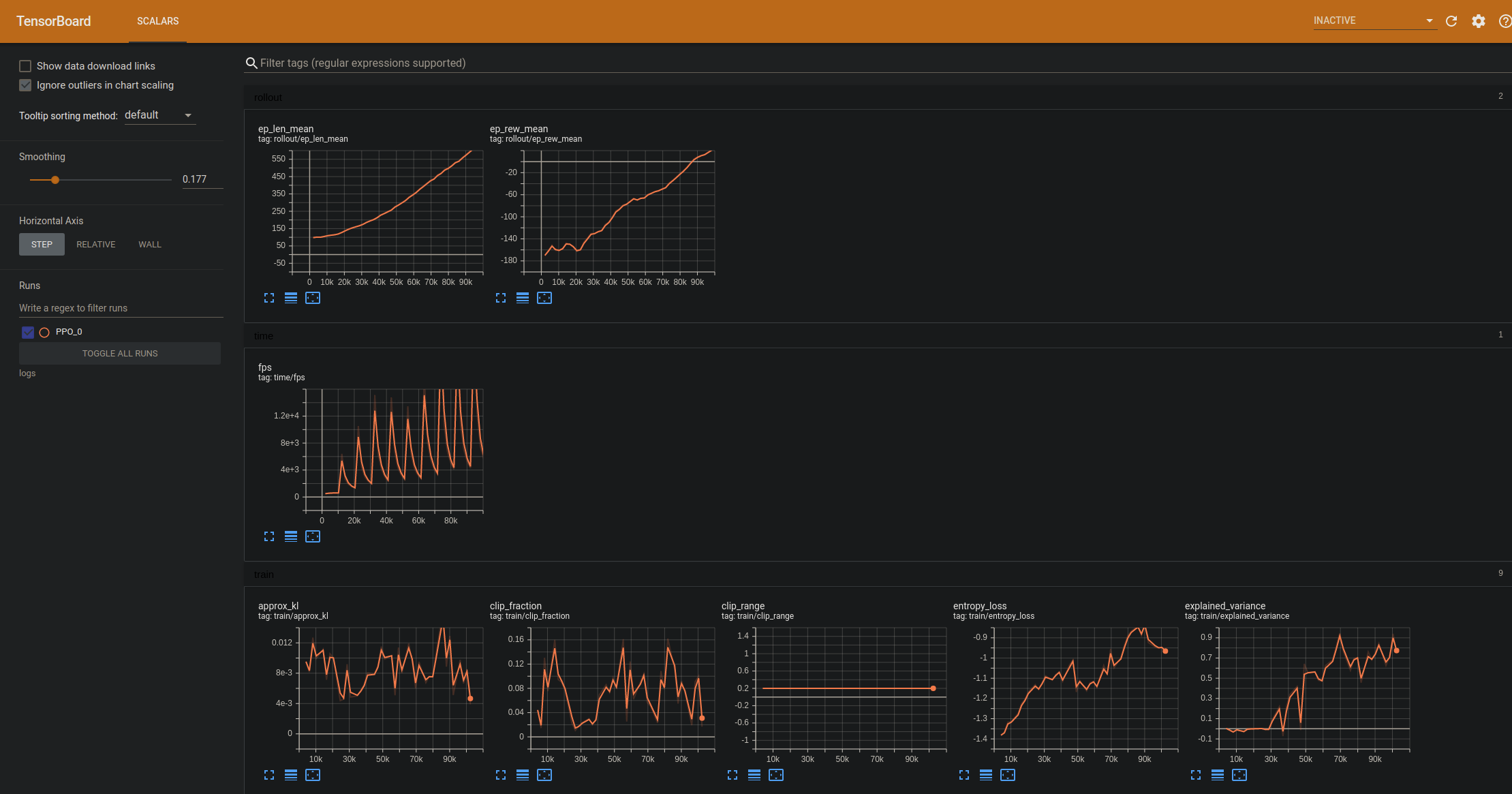 model.learn(total_timesteps=TIMESTEPS, reset_num_timesteps=False, tb_log_name="PPO")