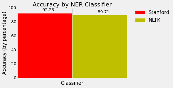We know how to use two different NER classifiers! But which one should we choose, NLTK's or Stanford's? Let's do some testing to find out.
